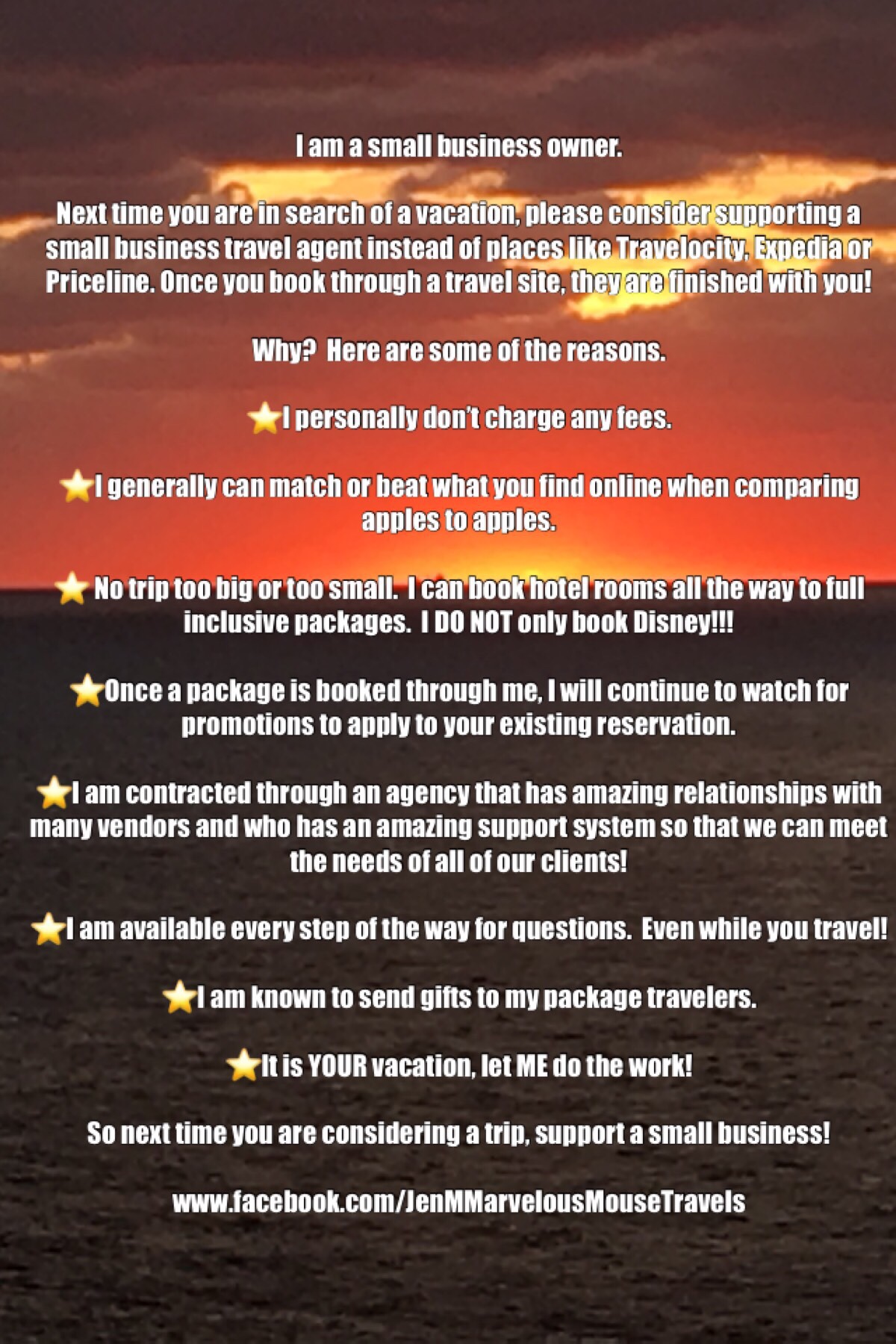 That’s right! If you have traveled to Disney World, Universal Studios, Sandals, taken a cruise or visited any other vacation destinations, the cost for a travel agent was already included in the price you paid.