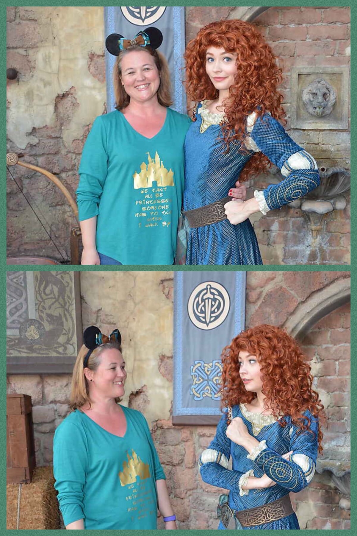 We tend to pick basic colored shorts and tees and then I order a character themed bow to attach to my ears for the day. I usually get the bows from Etsy or Hot Topic. Here is a fun Merida bound I did and she loved my bow!