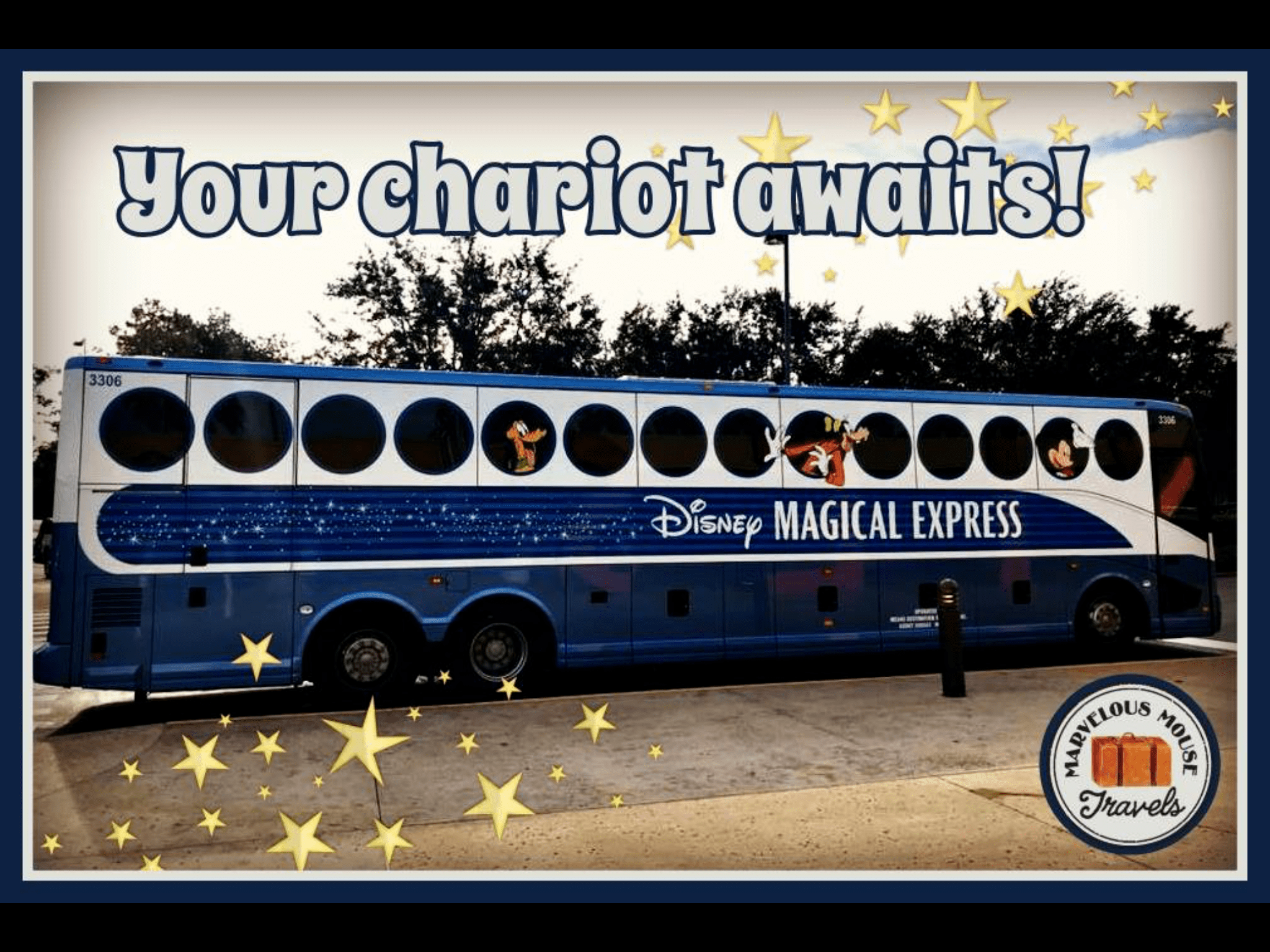 Let’s start with Magical Express. The Magical Express is Disney’s complimentary Round Trip bus service to and from your Disney resort. The service is available for all arrivals and departures at Orlando International Airport. And they even deliver your luggage right to your room!