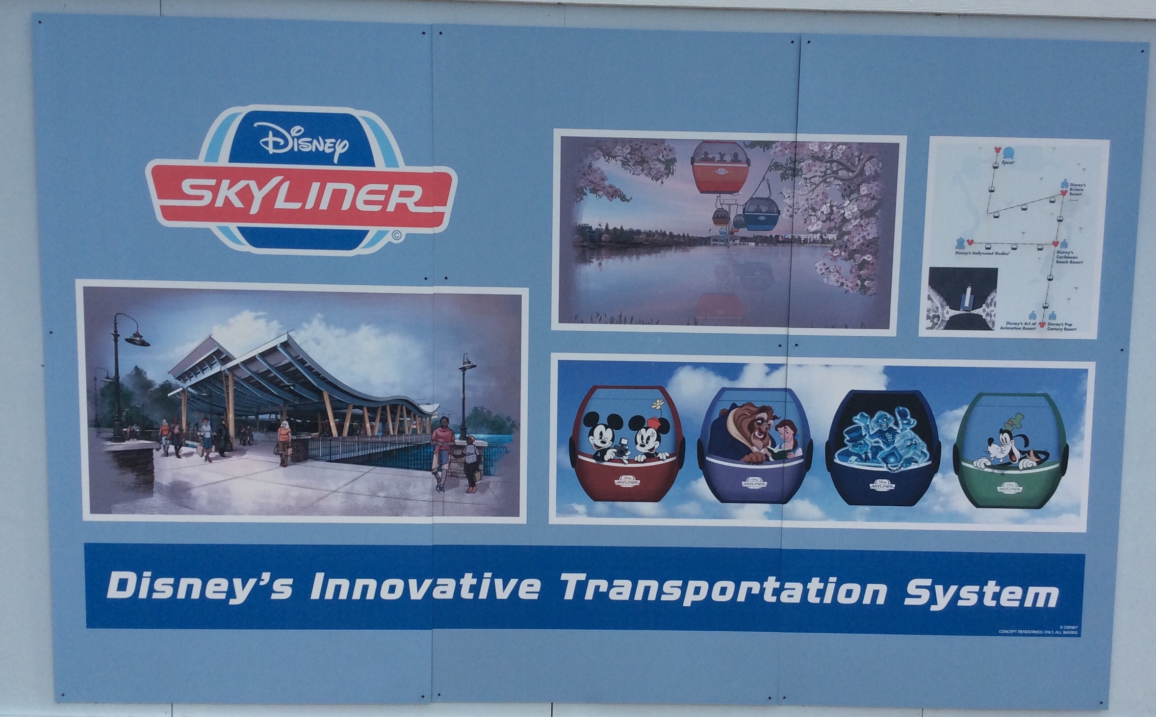Beginning in September, guests of Art of Animation, Pop Century, Caribbean Beach Resort and the All new Riviera Resort, will also have the option of taking the all new Skyliner to Hollywood Studios and Epcot. This is a Sky Gondola system and each car will seat up to 10 guests each.