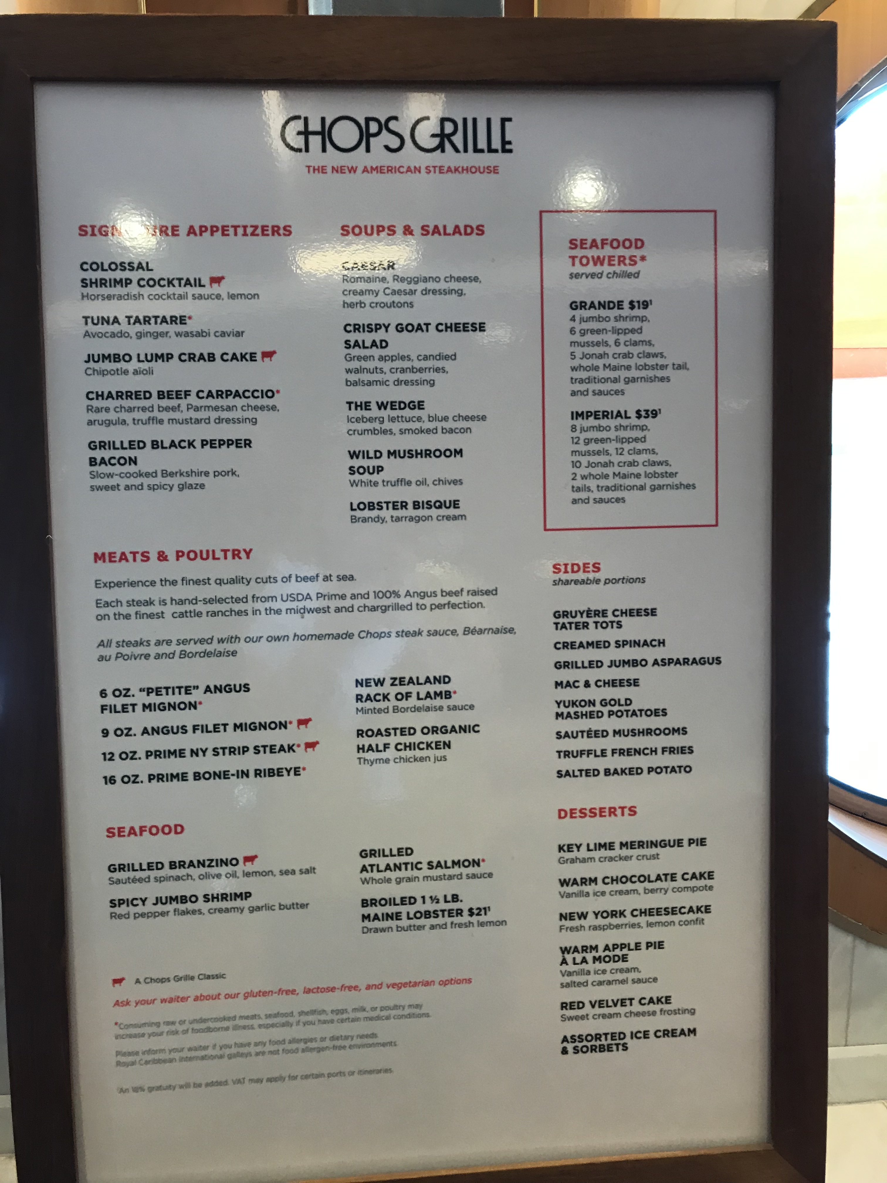 Lastly is the very popular, Chops Grille. Chops is a signature steakhouse with the only dry-aged steaks at sea.