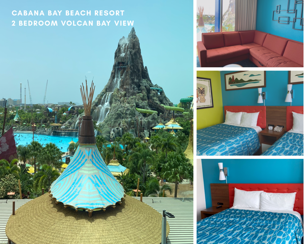 We spent the week in a 2 Bedroom Volcano View Room at Cabana Bay Beach Resort. This room has plenty of room for the entire family and sleeps 8! And you absolutely can not beat the view!