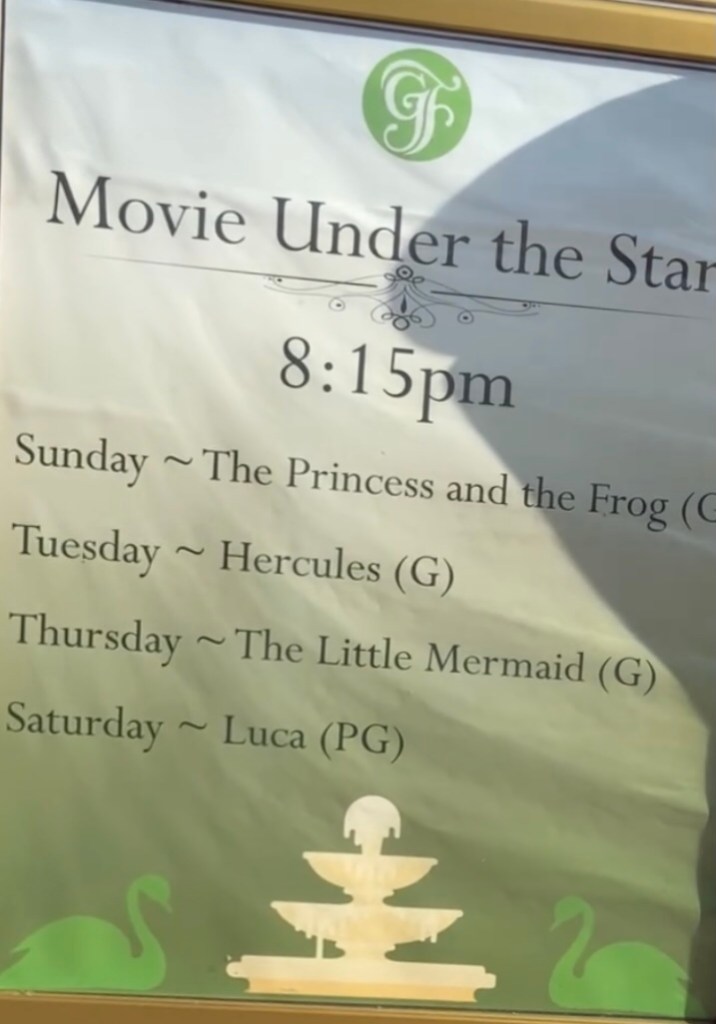 Activities are available for kids and adults to enjoy throughout the day. You can find a schedule in the hotel lobby and also posted around the resort. Anything from lawn games to trivia to Movies on the Lawn or a search for the White Rabbit’s Pocket Watch.