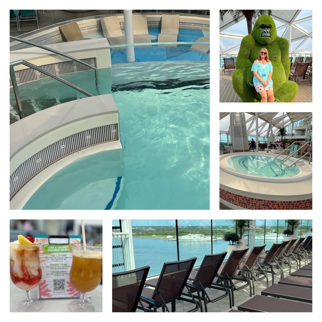 All Royal Caribbean ships feature a Solarium for guests 18 and over, but the Wonder of the Seas Solarium is next level! There are 3 floors of pools, loungers, hot tubs and my favorite bar on board!
