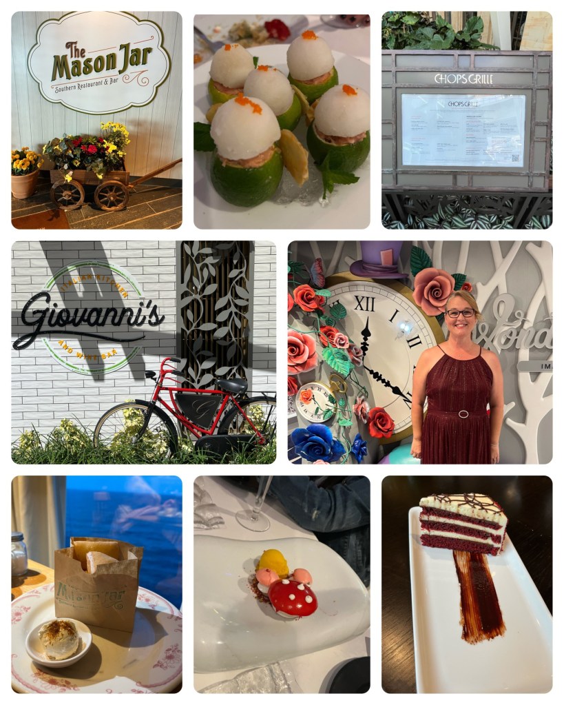 One of my favorite things about Wonder of the Seas is the Specialty Dining venues. These are elevated dining experiences with an additional cost. Children are permitted, but honestly, there were only a handful present at these dinners. We dined at Chops, The Mason Jar, Giovanni’s and Wonderland.